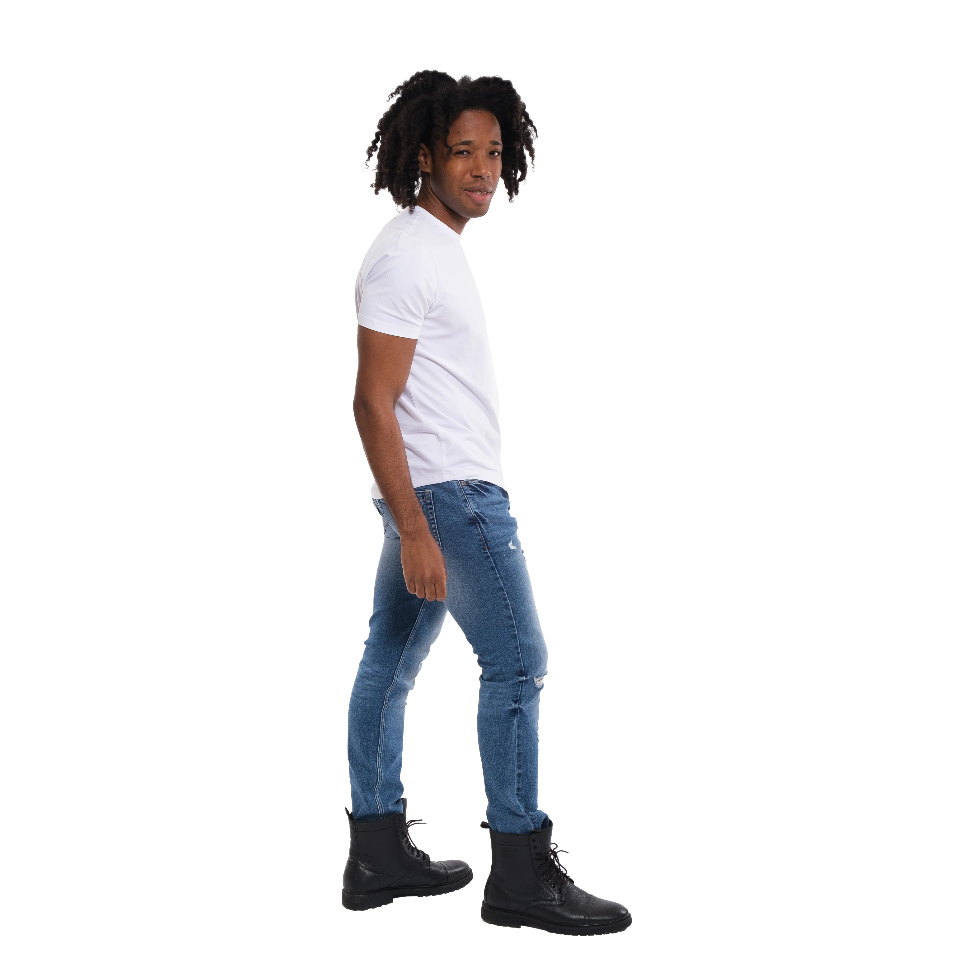 We took our Stream wash and ran through the grinder for that hint of fashun. The perfect mid to light blue, just shredded. Light whiskering at the top and a little bit of tacking at the knees to develop that depth of color. These have a medium rinse with light khaki stitching and matching trim. Get a little freaky with em. Premium YKK zippers and rivets.