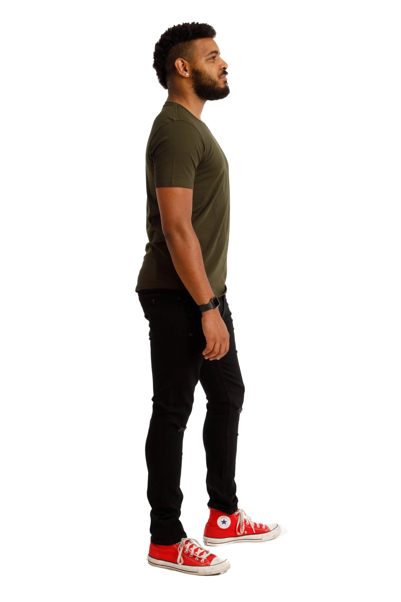 This t-shirt is olive green. Darker than mint but not too dark. A lovely color. A subdued and dark green that just kinda just looks great with anything. Yep. Just Perfect.